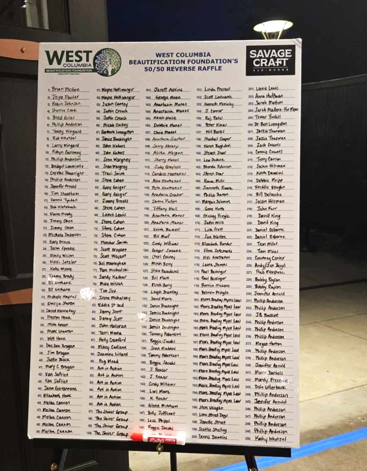 Congratulations to Preston Hook and Reggie Jacobs. The two won $,5000 each. There were 250 West Columbia Beautification Foundation Reverse Raffle tickets sold at $100 each.