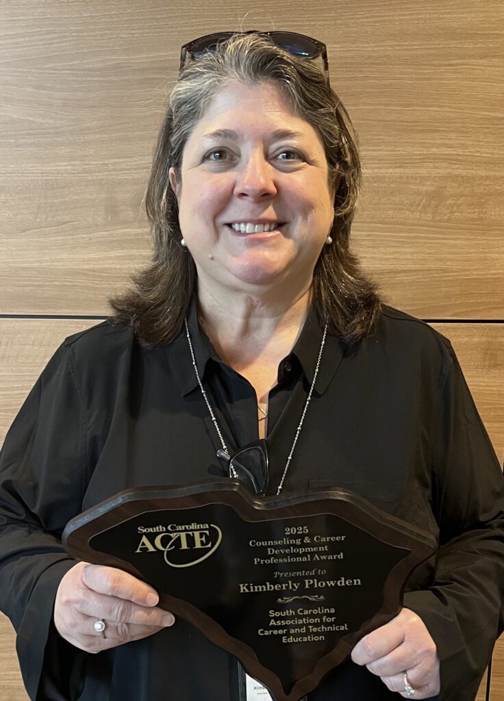 Kimberly Plowden has been selected as the Counseling and Career Development Professional of the Year Award by the South Carolina Association for Career and Technical Education (SCACTE). The annual award recognizes a school counselor or career development professional who has made significant contributions in Career and Technical Education (CTE) programs within South Carolina and their efforts in connecting students to CTE opportunities. Plowden is the coordinator of Work-Based Learning at the Lexington Two Innovation Center.