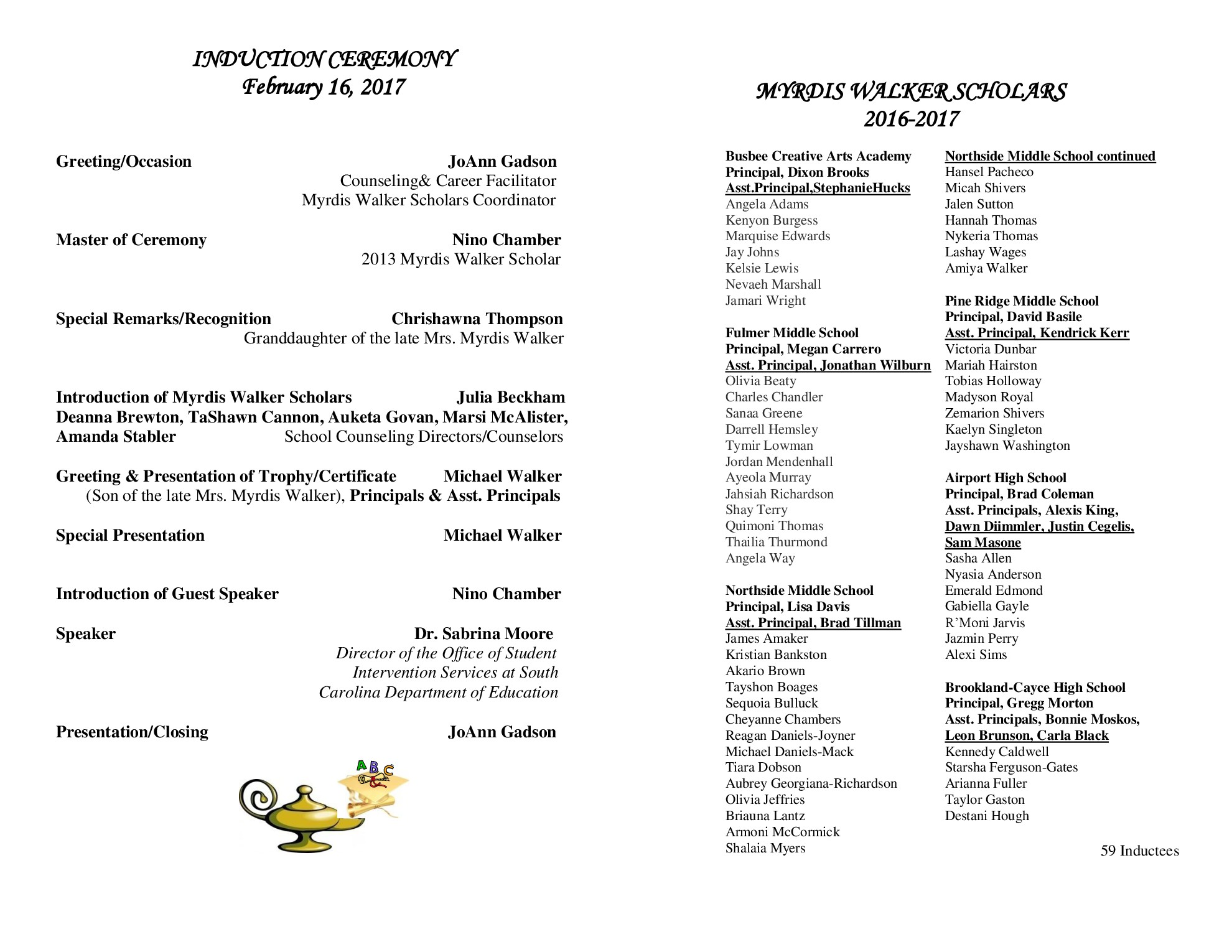 Almost 60 Lexington District Two students were inducted into the Myrdis Walker Scholars program on