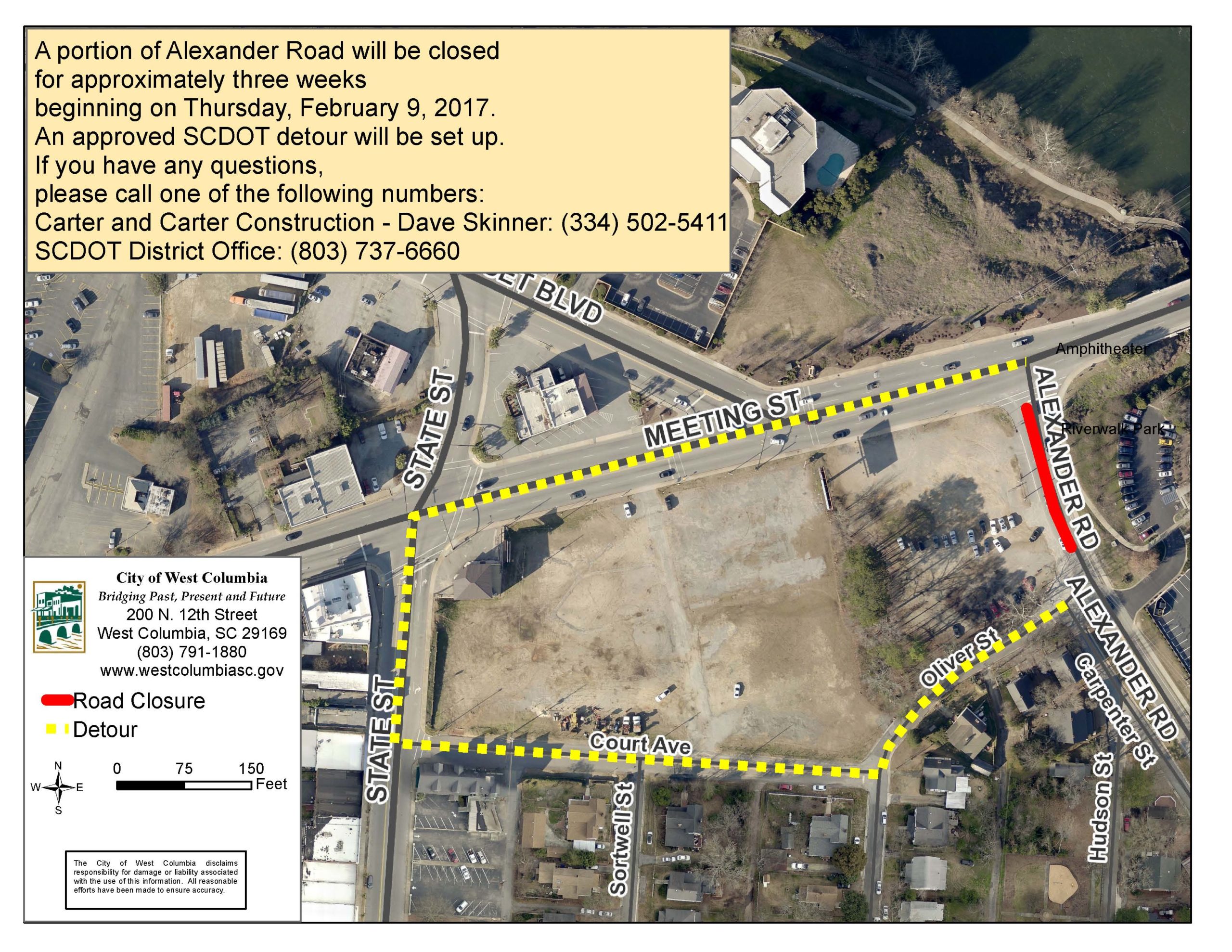 A portion of Alexander Road in West Columbia closed for approximately three weeks beginning on Feb.