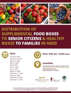 Read More >>Brookland-Lakeview Empowerment Center – BLEC will be distributing supplemental food boxes to senior citizens & healthy boxes to families in need. Details below Friday, February 13, 2026 9 AM – 12 PM 1218 Batchelor St., West Columbia, SC