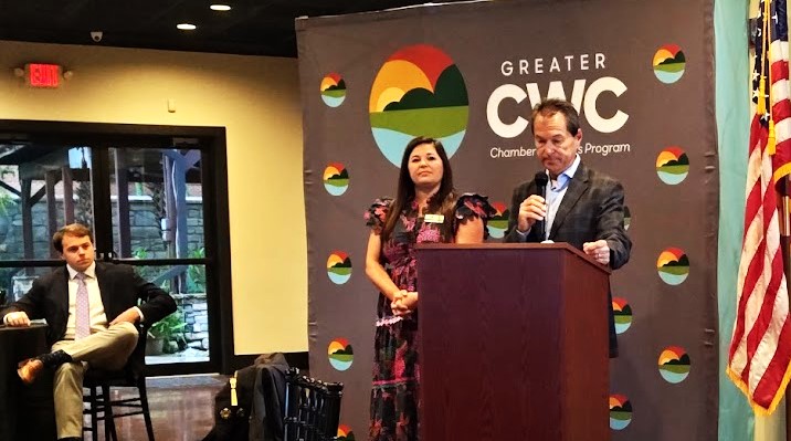 When he opened his comments, James said: “While we don’t use this podium for political discussion, the podium is here to inform and update our members on matters that directly impact them, and sometimes, like today, the two matters overlap, at which time we choose open and transparent communication with our Chamber membership.”