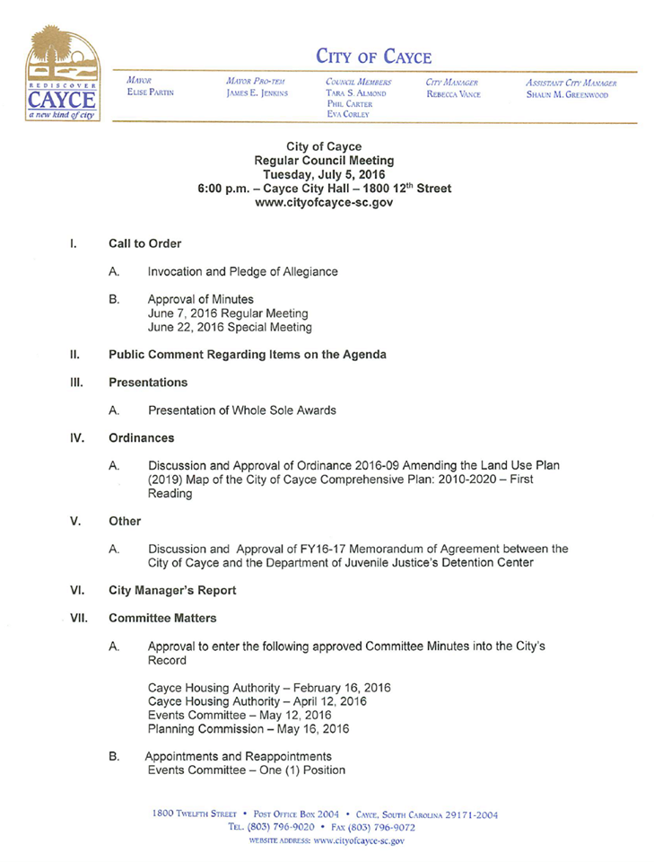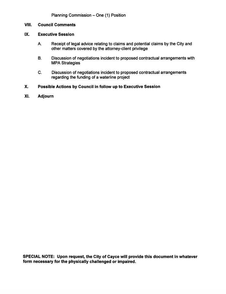 Cayce City Council to meet at 5 p.m., Wednesday. Click on agenda below to enlarge.