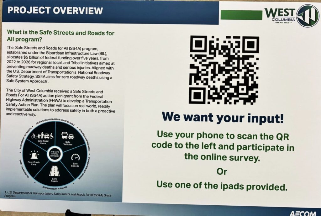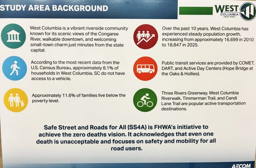 The City of West Columbia is in the process of developing a “Safe Streets and Roads for All Safety Action Plan.” The development of the safe streets plan is funded by a federal grant, to improve walkability, accessibility, and reduce serious crashes.
