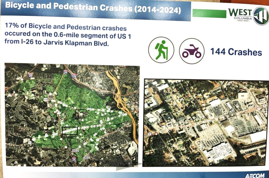 Thursday night there was a Safe Streets public meeting held at West Columbia City Hall to provide information to West Columbia residents. Pages of West Columbia traffic and crash data were presented at the meeting. Those who attended were asked to fill out a survey to gauge safe street concerns. The citizen input, combined with SCDOT crash statistics, will serve as a basis for the Safe Street plan. If you didn’t attend Thursday evening, you can still provide input using this link: https://metroquestsurvey.com/dy5m5u