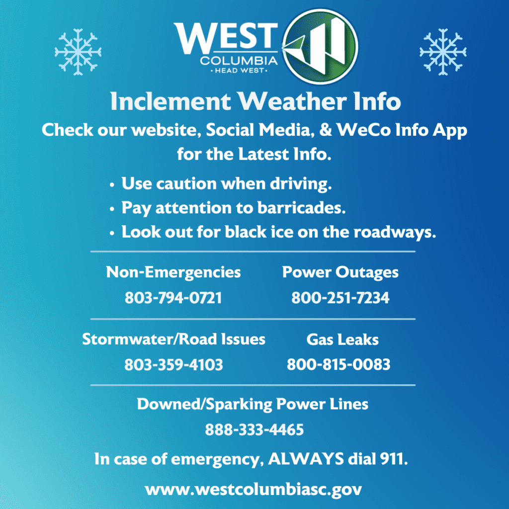 City of West Columbia Winter Storm Information, Including Emergency Phone Numbers