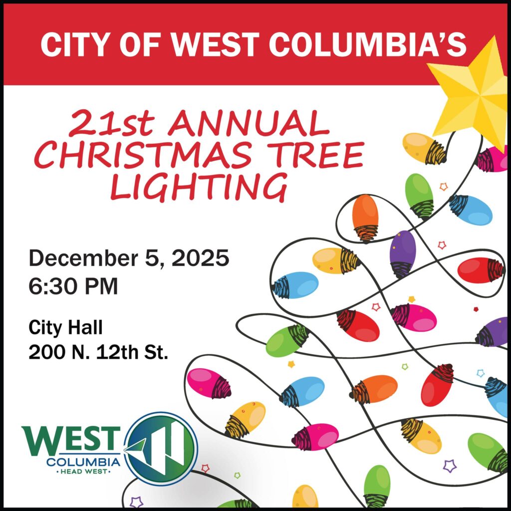 The City of West Columbia’s 21st Annual Christmas Tree Lighting is at 6:30 p.m. on Dec. 5. It’s at West Columbia City Hall, 200 N. 12th Street.