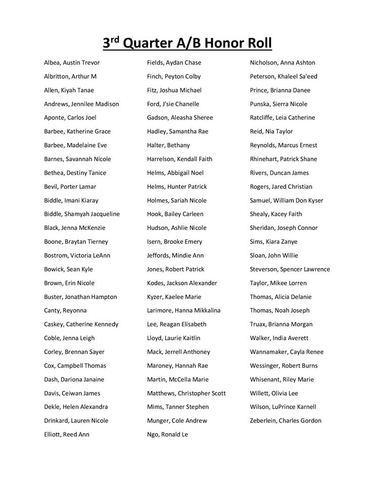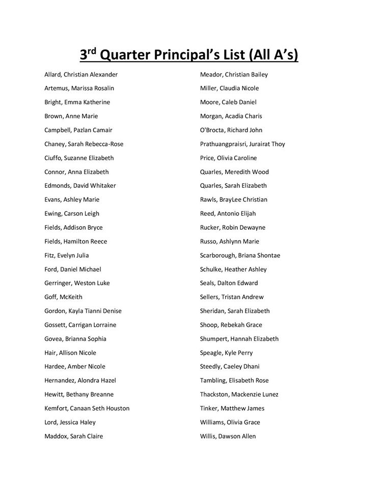 Gray Collegiate Academy has announced its Third-Quarter Principal’s List and A/B Honor Roll – Click on lists to enlarge and read names.