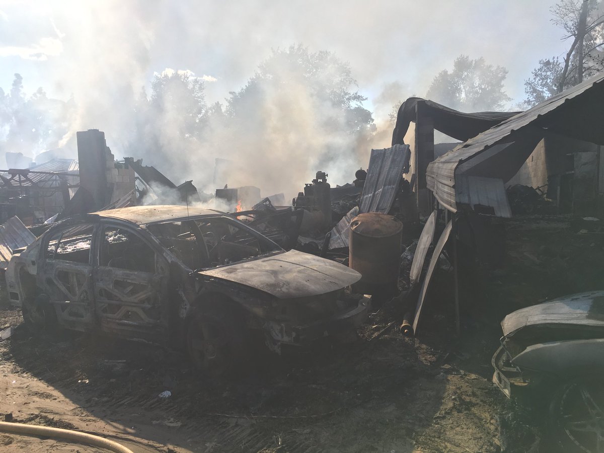 A civilian and a firefighter were transported to the hospital for heat exhaustion. Both are expected to recover. The fire caused $300,000 in damages done to business and vehicles. An investigation is underway.