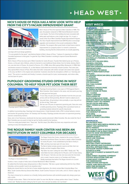 October-November West Columbia Newsletter is out with message from Mayor Tem Miles, City Council, and Nick’s, Pupology, and The Rogue