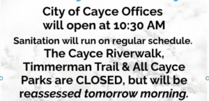 There has been a lot of rain in the last few days. The upper parts of the Broad and Saluda Rivers have also gotten lots of rainfall. That river water is now flowing down to the Congaree River and could affect the Cayce and West Columbia Riverwalks. A Flood Warning […]