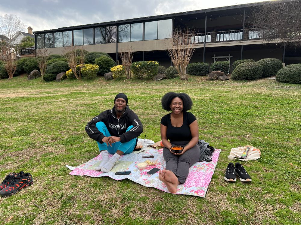 Bri and Aidan who live in West Columbia are sister and brother. They were having a picnic on the grass at Riverwalk, in front of Stone River, Wednesday.