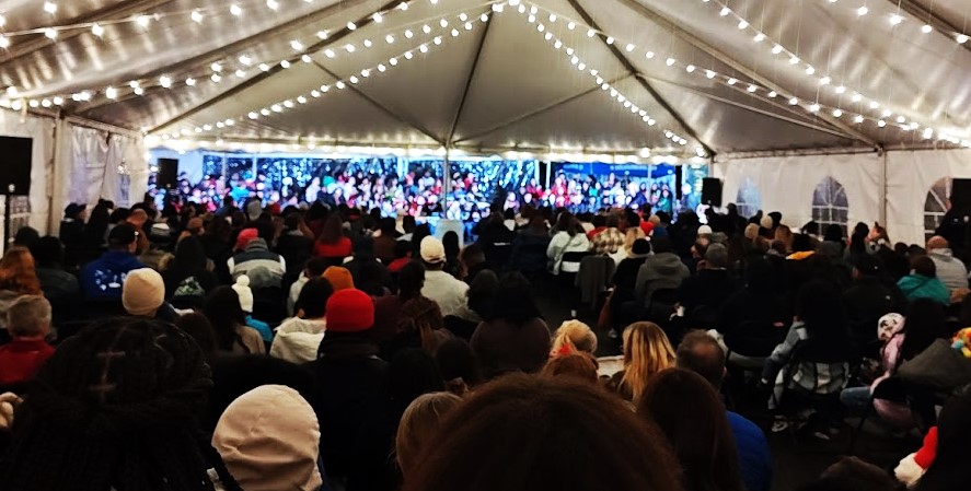 The program included Christmas carols, greetings from Master of Ceremonies Pastor Dow Welsh of Holland Avenue Baptist Church and Special Readings from Mrs. Claus. Students from East point Academy and Northside Middle School sang Christmas songs and a horned ensemble from Northside blew out Christmas tines.