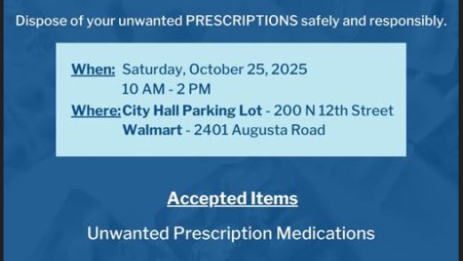 At Monday’s Special West Columbia City Council Meeting, Mayor Tem Miles encouraged everyone to get out and enjoy the many events. “We have Fall Back Fest coming up,” he said. City Administrator added: “We have the Fall Recycling, shredding and Drug Take-Back Day, Saturday.”
