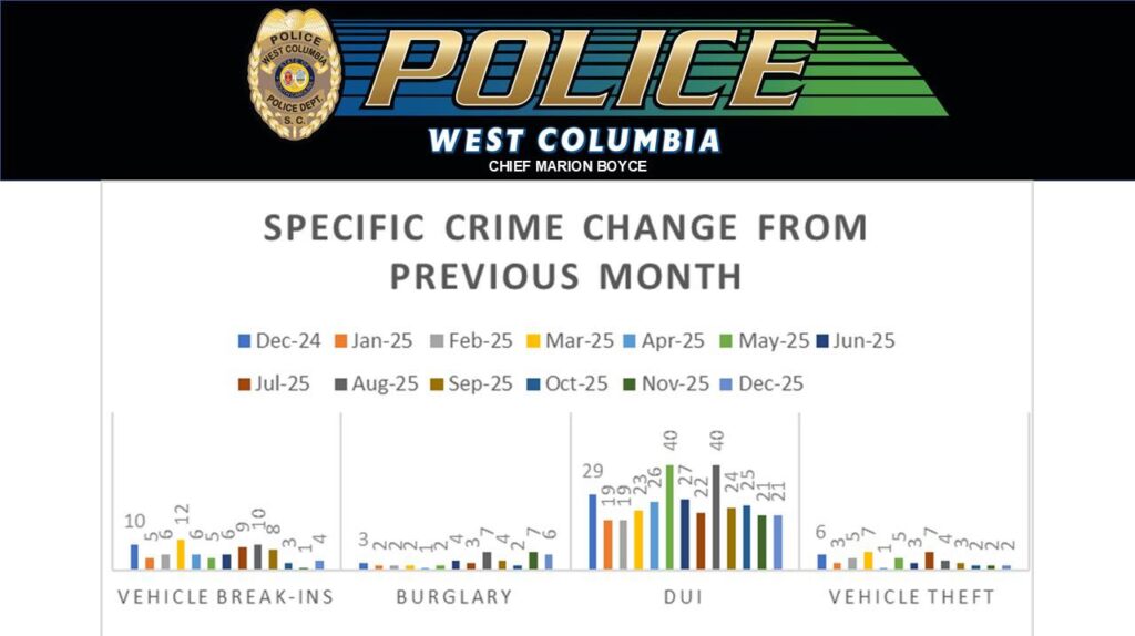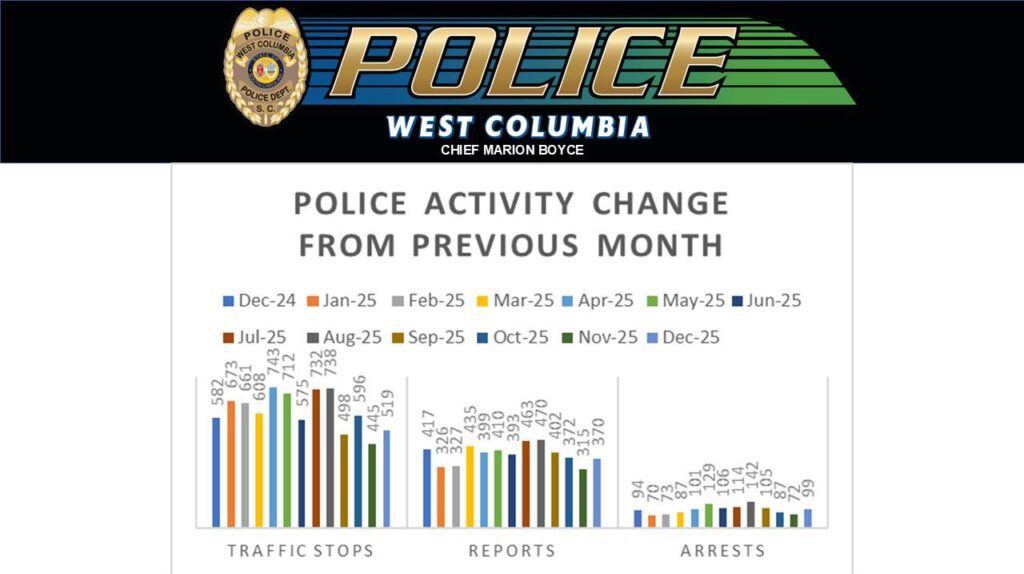 West Columbia Police Department made 99 arrests in December, response time average was 5:43