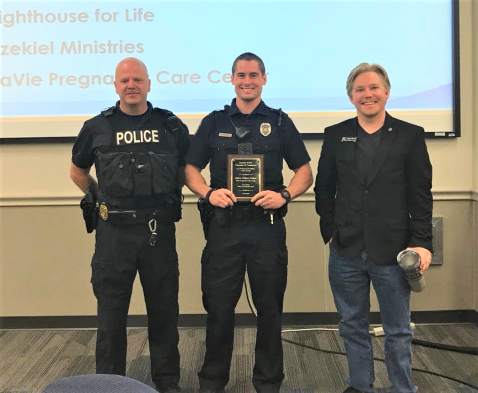 At the September Greater Cayce-West Columbia Chamber of Commerce September Breakfast, Thompson was given the Officer-of-the-Month Award that is sponsored by West Columbia businesses First Community Bank and The Graphics Source.