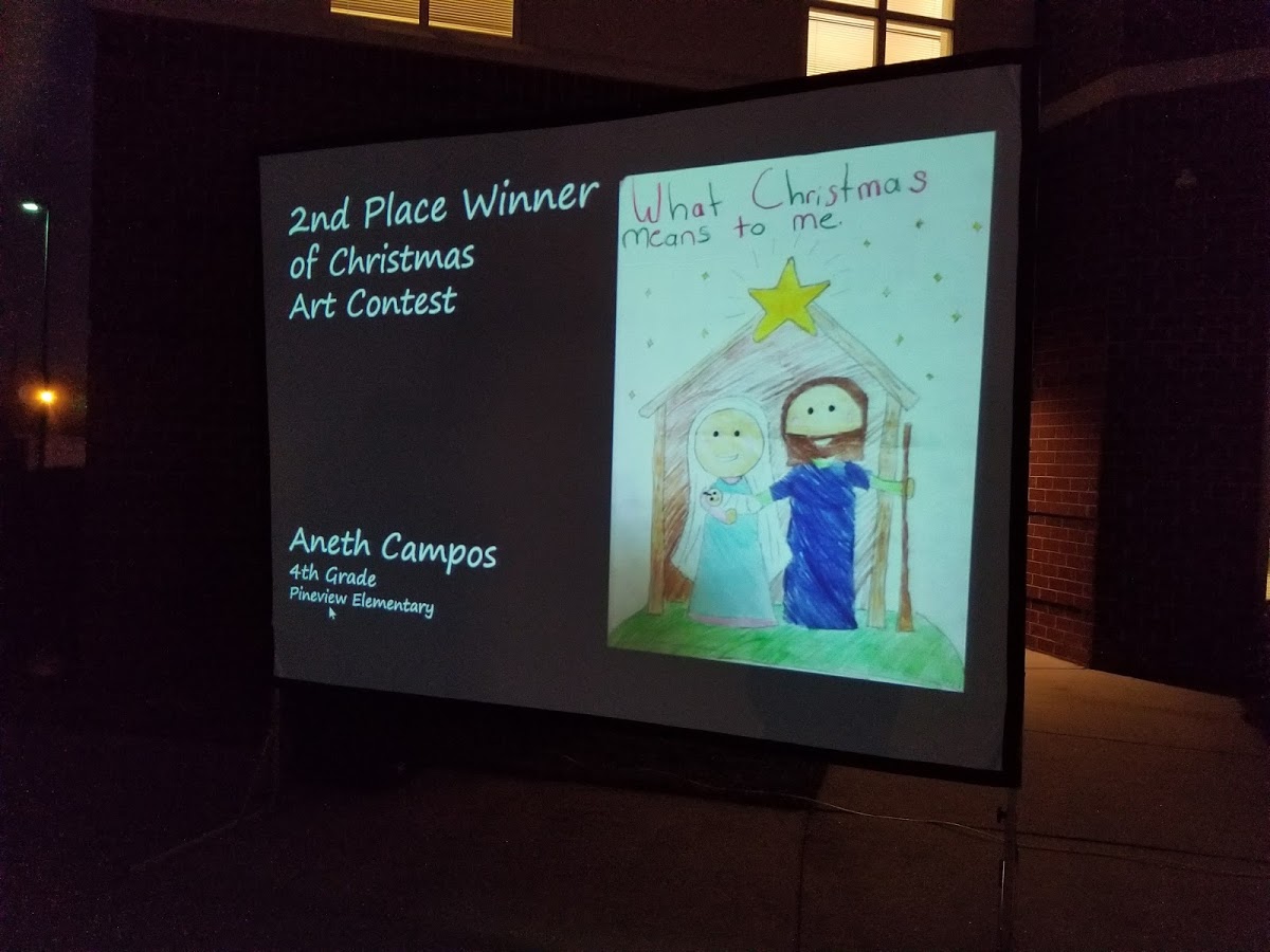 The Christmas tree lighting also included a student artwork contest. The art contest winners were: Anthony Argoe, first grade, Saluda River Academy for the Arts: Aneth Campos fourth grade Pineview Elementary School; Emma Sturkie fourth grade Saluda River Academy for the Arts; Amelia Hall first grade, East Point Academy; Camila Costno Rodigues fourth grade, Pineview Elementary School; Kelsey Sharperson, fifth grade Saluda River Academy for the Arts; Preston Gammons, second grade East Point Academy; Sam Webster fifth grade, East Point academy, Zujeily Batista, fifth grade Pineview Elementary School
