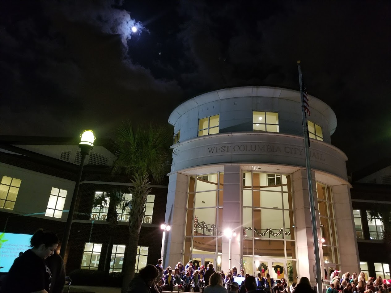 At West Columbia’s tree lighting Mayor Bobby Horton spoke, and ushered in the yuletide season Friday under a bold Carolina moon on the grounds of West Columbia’s City Hall complex. Lexington School District Two students provided music for the large crowd.
