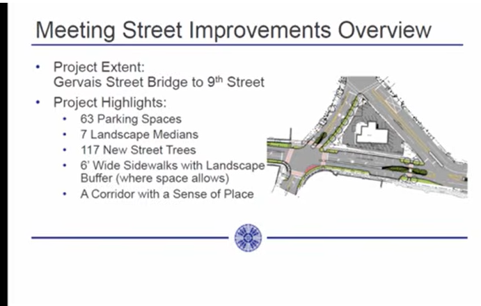 The plan includes the reduction of Meeting Street from four lanes to two lanes, from State Street to Ninth Street, in an effort to create a corridor with a sense of place.