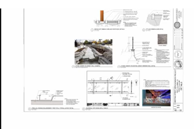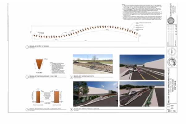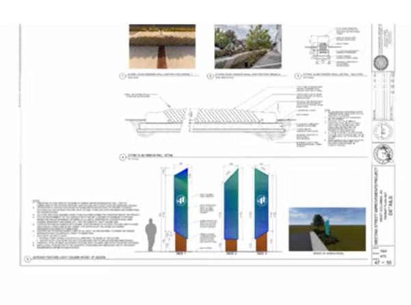 Also included are acrylic art panels. The medians will have river rock in them to convey a river theme and plantings in the corridor will be native to the area.